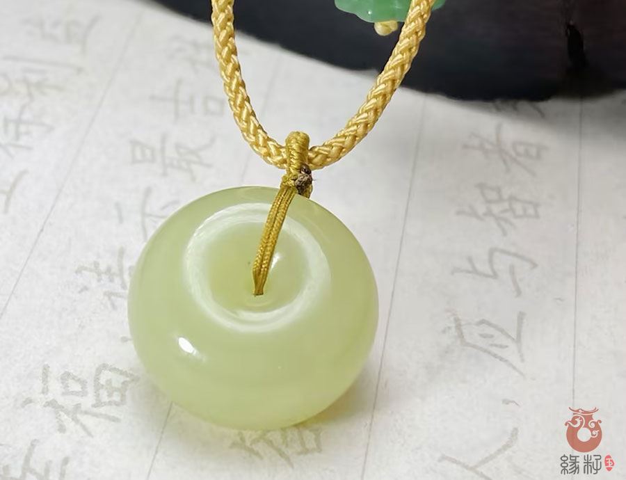 作品简述:缘籽和田玉平安扣挂件吊坠,天然优质和田玉黄玉,苏工大师设计雕刻,质地油润,光泽细腻,雕工精细,寓意平平安安,国检证书,七天无理由退货。