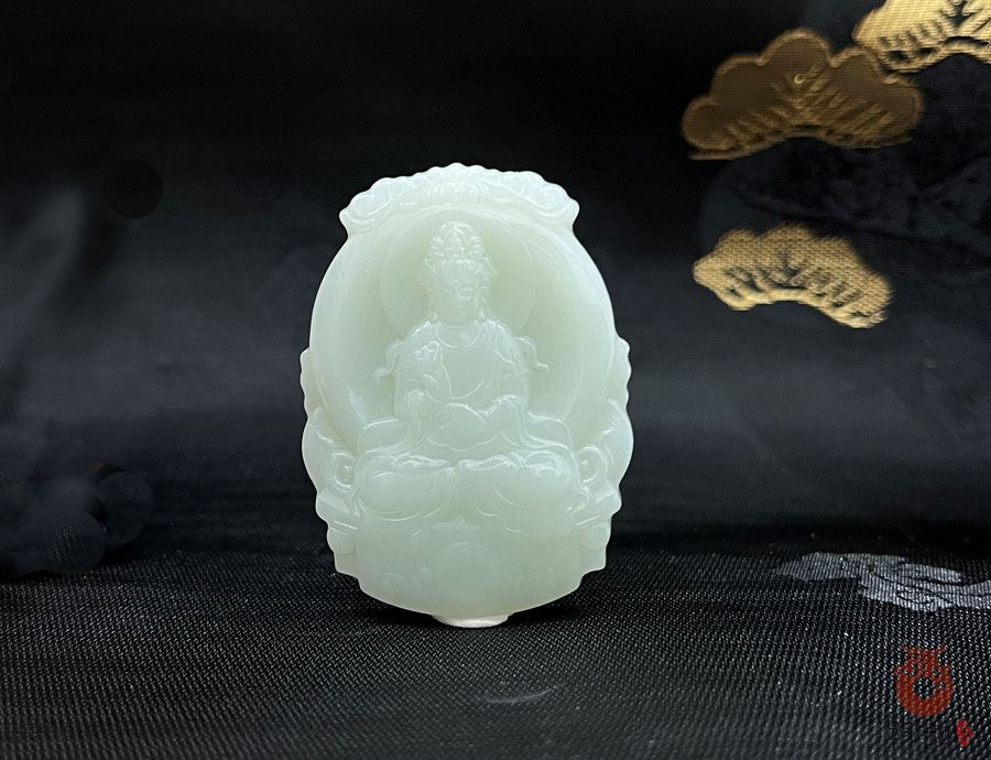 和田玉温润养人,观音本身具消病除障法力,共同强化祛病延寿的象征意义。