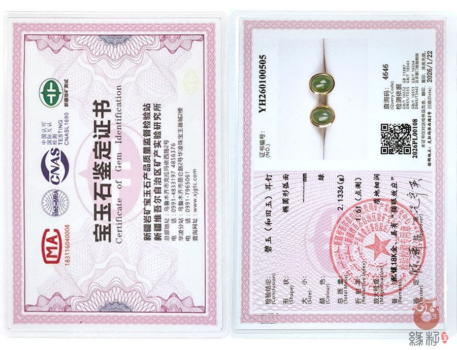 (附:新疆岩矿宝玉石产品质量监督检验站;国家和田玉产品质量监督检验中心样例)