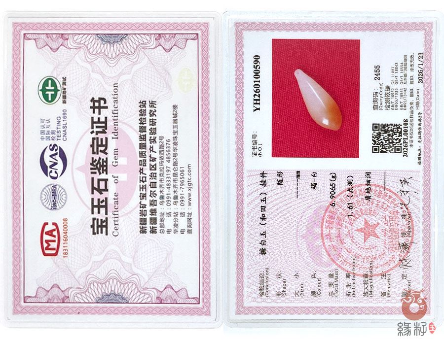 (附:新疆岩矿宝玉石产品质量监督检验站国家和田玉产品质量监督检验中心样例)