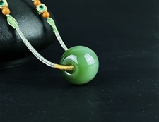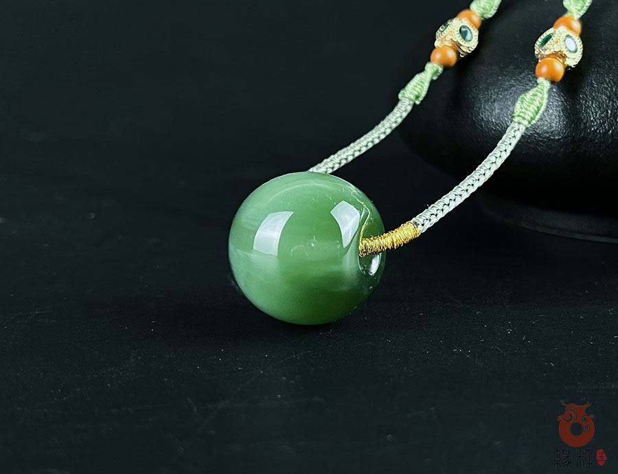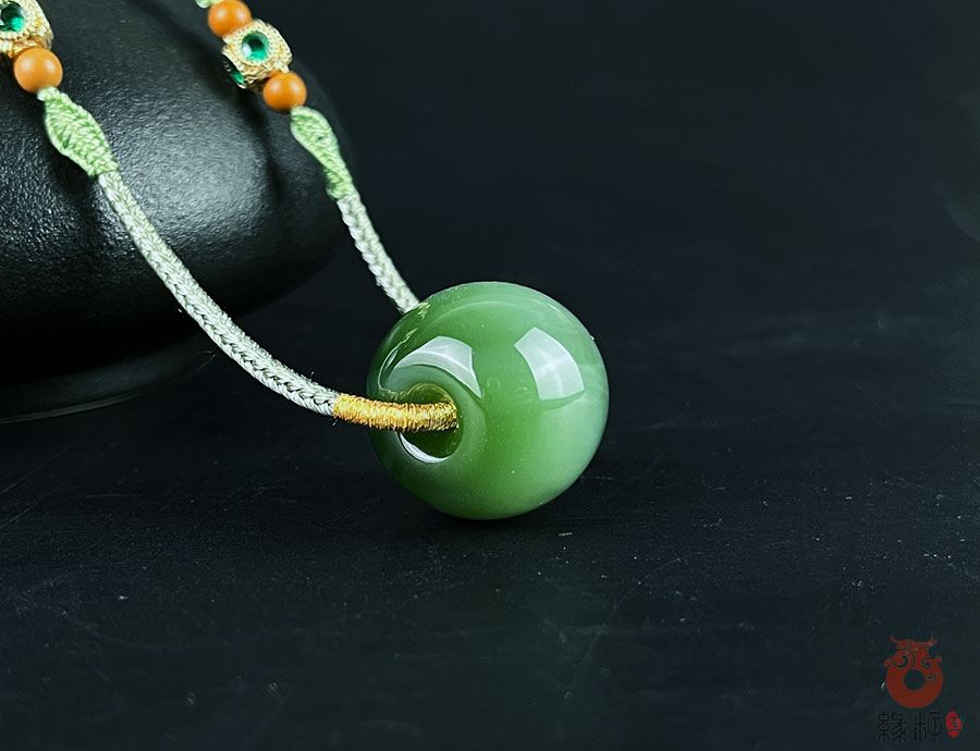 作品简述:缘籽和田玉平安扣转运珠挂件吊坠,天然优质和田玉碧玉猫眼,苏工大师设计雕刻,质地油润,光泽细腻,雕工精细,寓意‌时来运转,国检证书,七天无理由退货。
