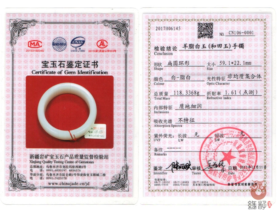 (附:新疆岩矿宝玉石产品质量监督检验站;国家和田玉产品质量监督检验中心样例)