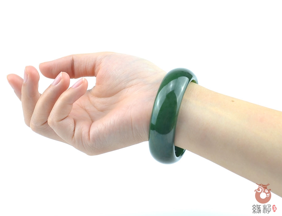 作品特色: 流行扁条设计,时尚潮流新款,宽窄适中,贴身舒适,高雅大方,油润光泽,靓丽美观;玉质温润细腻,油糯老熟,结构及色泽均匀且致密无杂质,属高端和田玉料/出自老坑,色泽碧绿洁净,高雅靓丽,稀有菠菜绿碧玉臻品;精美包装礼盒及手提袋。