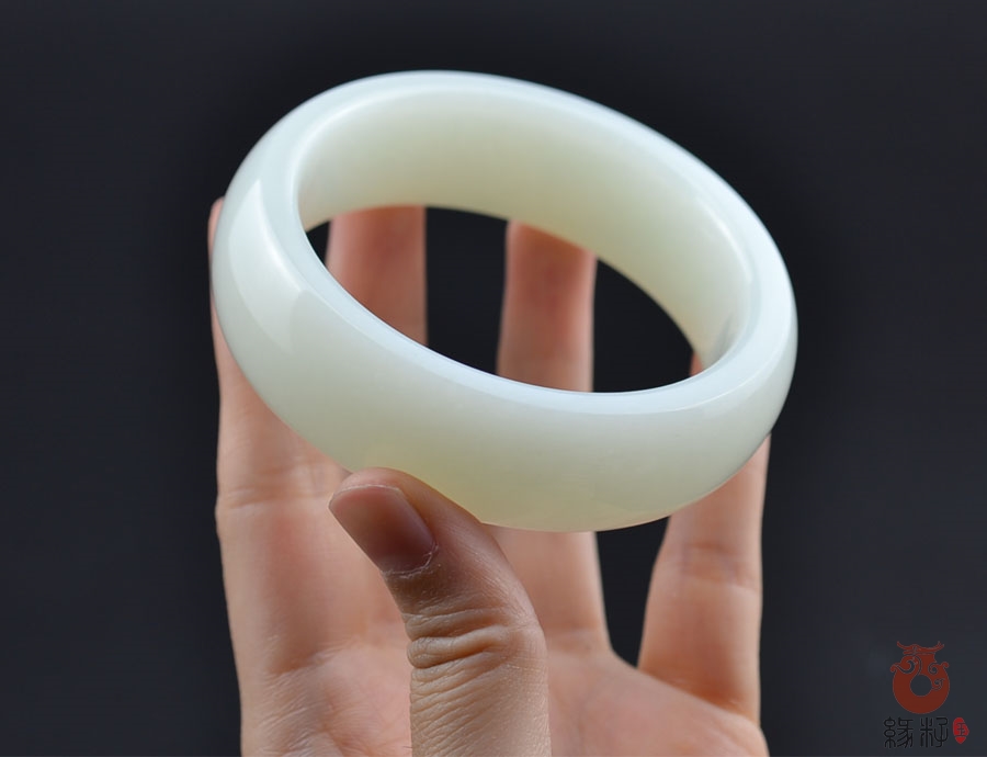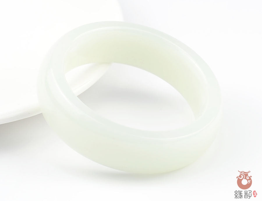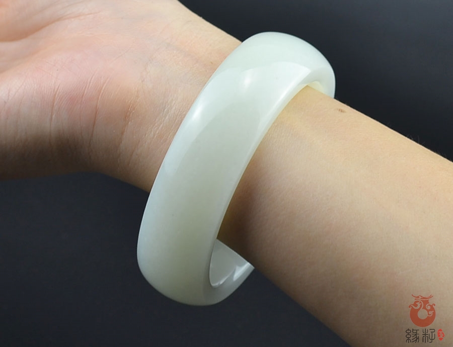作品简述:缘籽和田玉羊脂白玉加宽扁条时尚款手镯,纯天然上等和田玉,苏工大师制作,缘籽玉羊脂白玉手镯质地油润光泽细腻,设计完美做工精细,国检证书