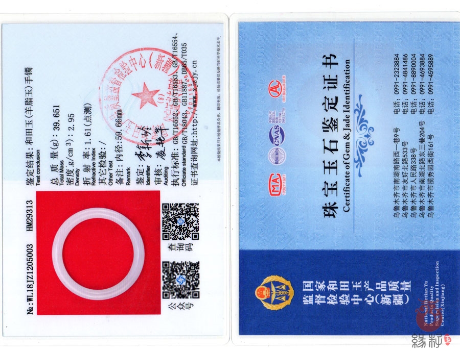 中国新疆和田玉网出售的商品均出具以下资质的国家权威质检部门质检证书: