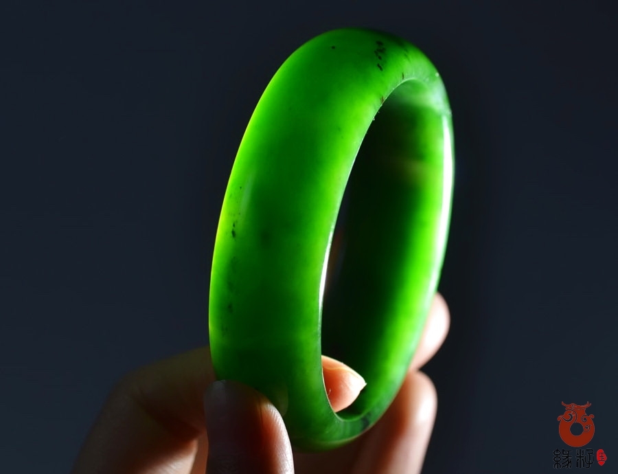 作品简述:缘籽和田玉碧玉扁条时尚款手镯,纯天然上等和田玉,苏工大师制作,缘籽玉碧玉手镯质地油润光泽细腻,设计完美做工精细,国检证书