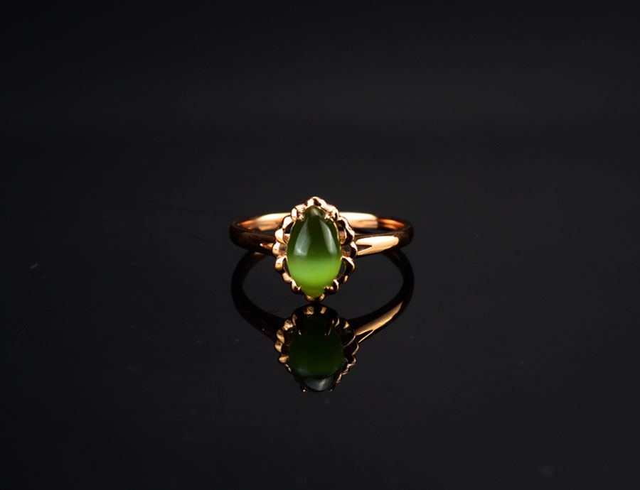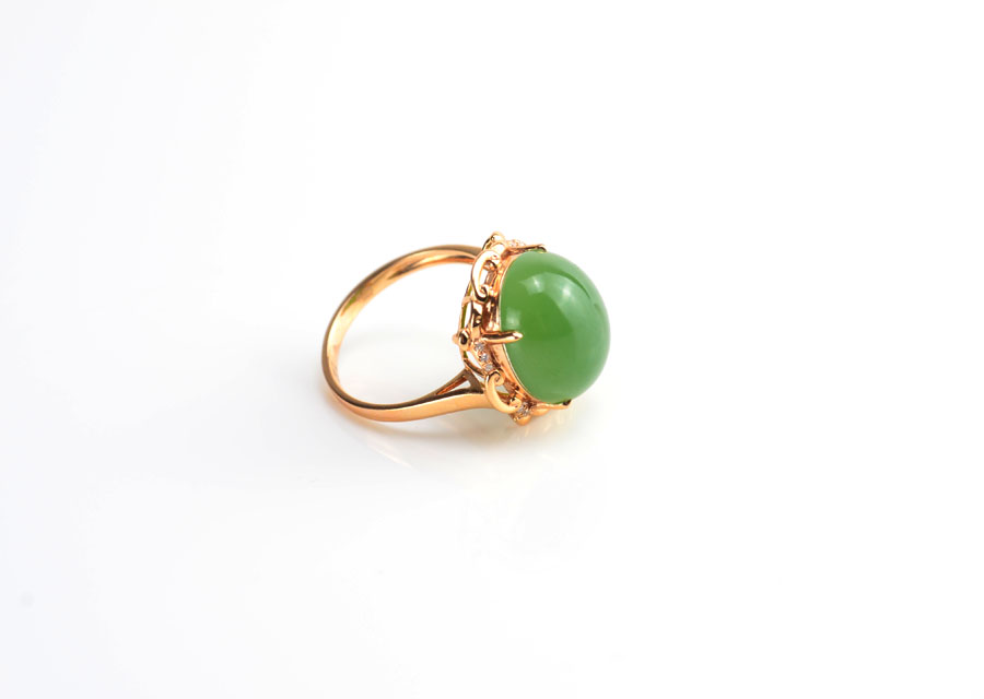 和田玉金镶戒指和田玉碧玉18K金镶戒指