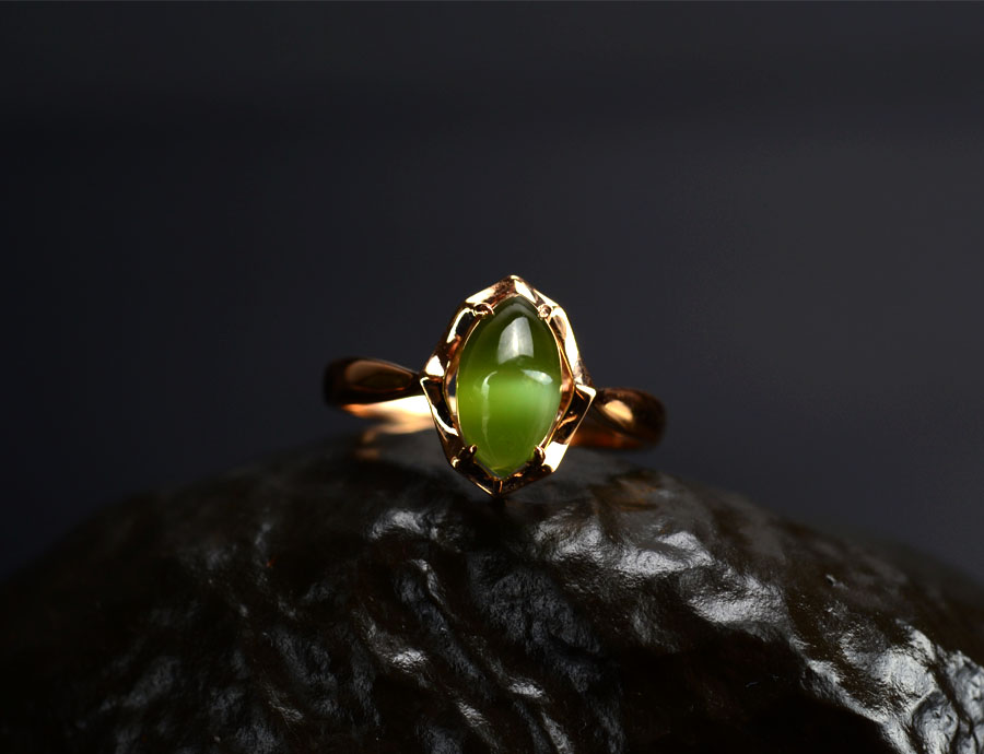 和田玉金镶戒指和田玉碧玉猫眼18K金镶戒指