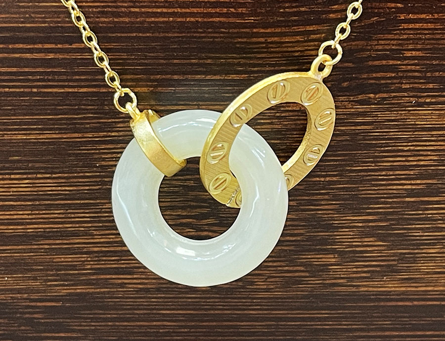 和田玉925银镶吊坠锁骨链白玉平安扣925银镶吊坠锁骨链