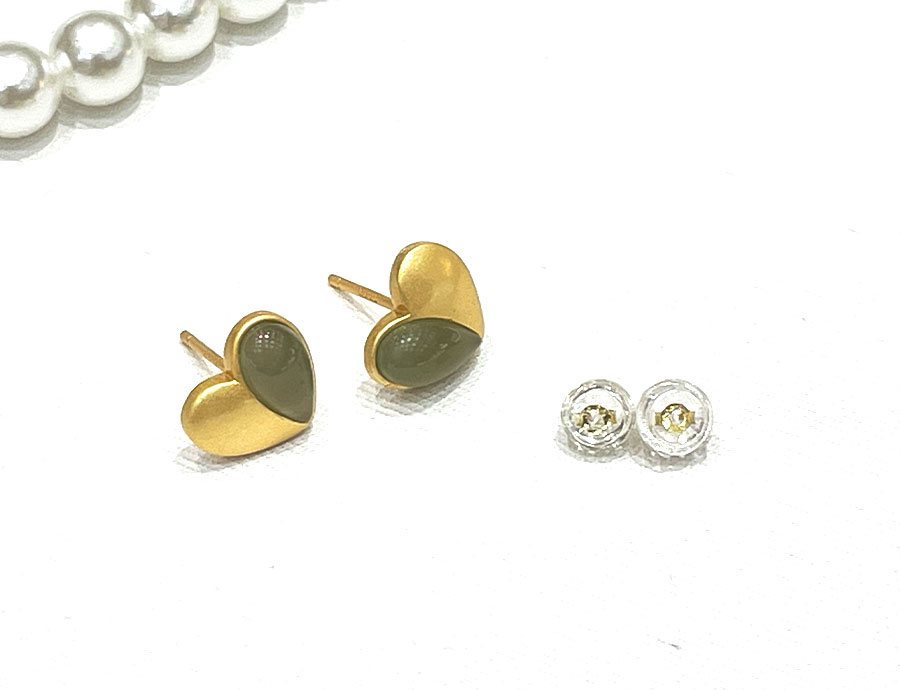和田玉银镶耳钉和田玉青玉爱心925银镶耳坠