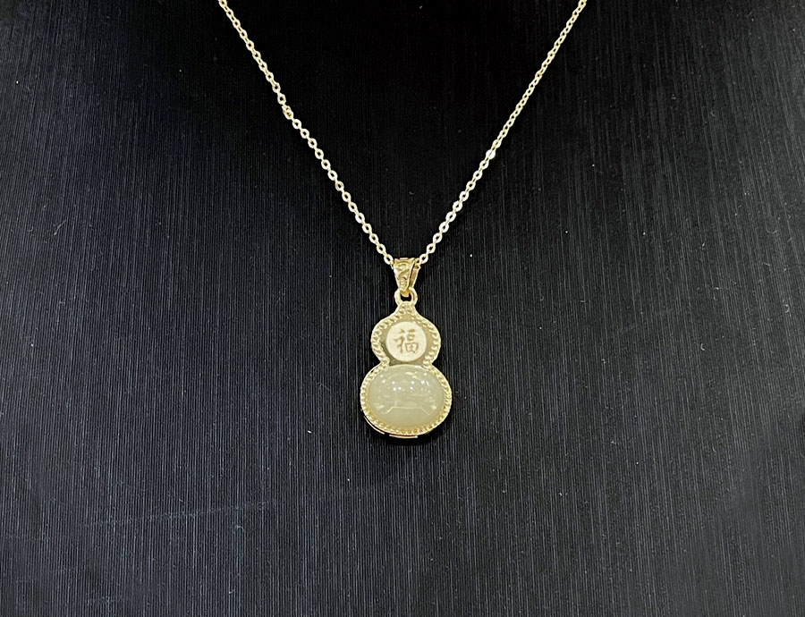 和田玉925银镶吊坠白玉福字葫芦925银镶吊坠