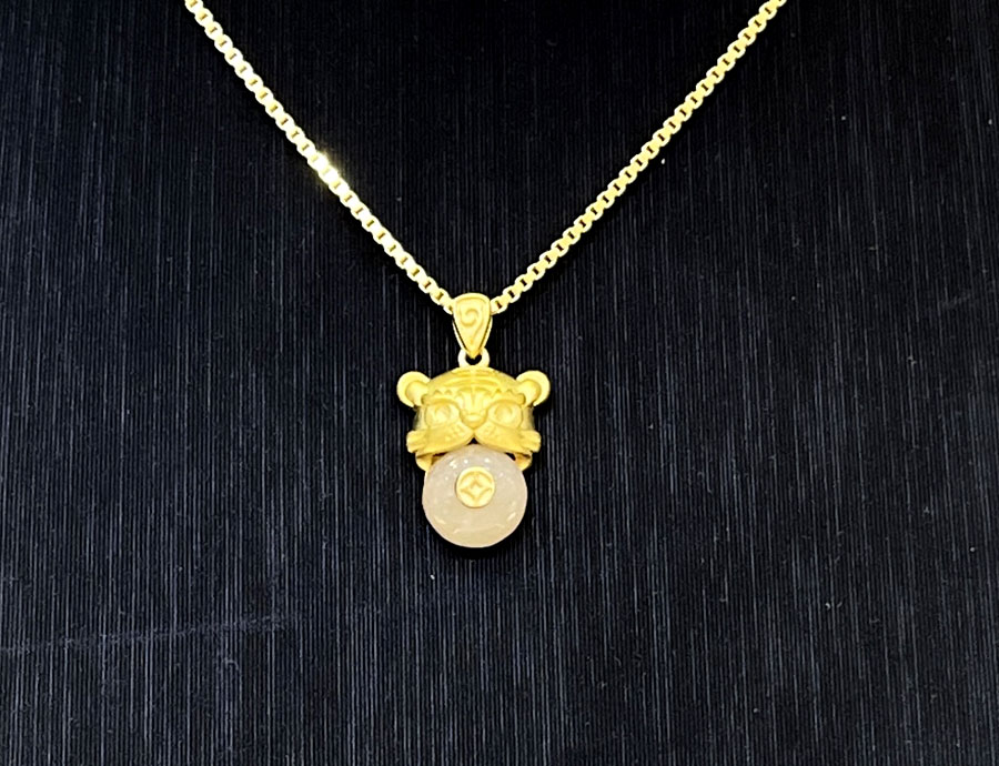 和田玉925银镶吊坠白玉小老虎925银镶吊坠