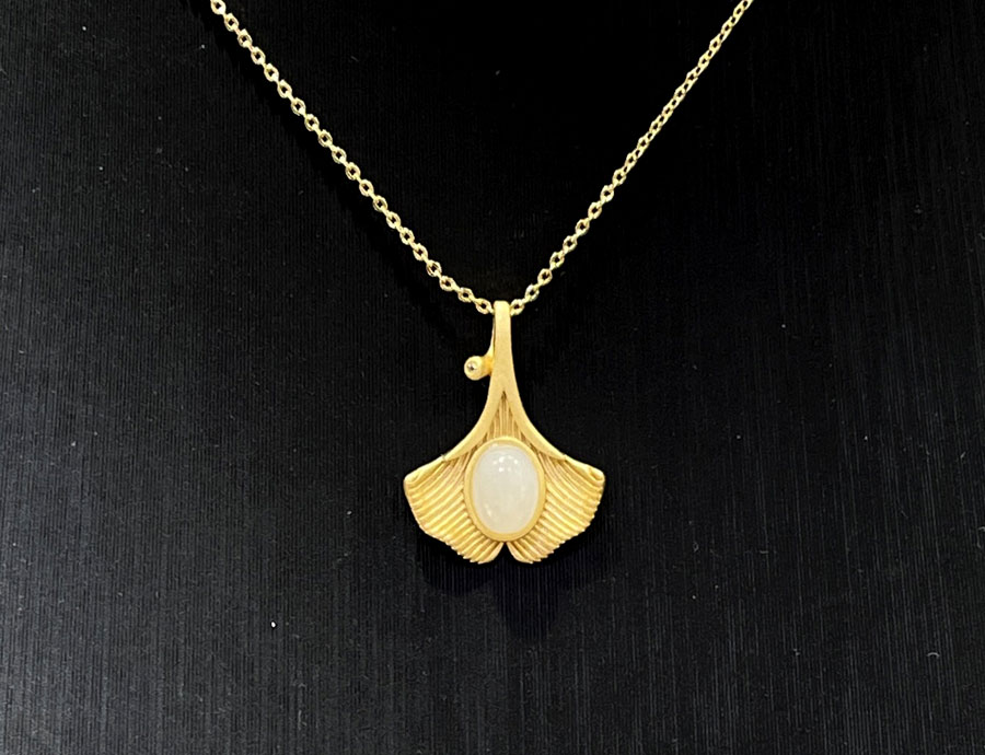 和田玉925银镶吊坠白玉银杏叶925银镶吊坠