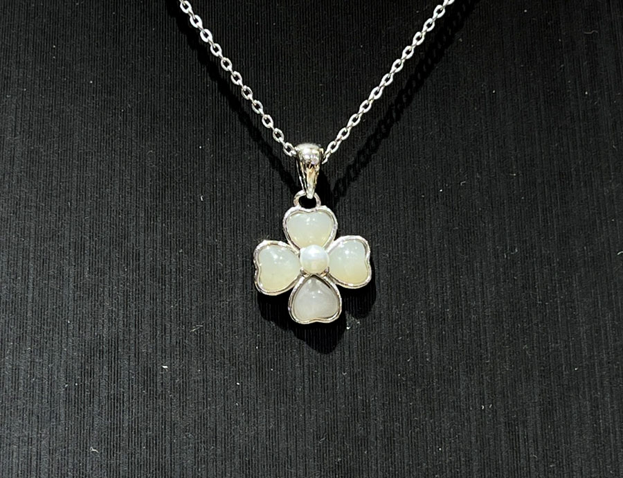 和田玉925银镶吊坠白玉如意纹925银镶吊坠