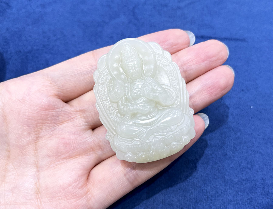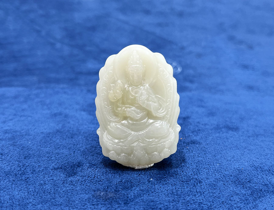 缘籽青白玉吊坠挂件-和田玉青白玉观音挂件