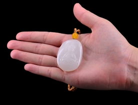 作品特色: 玉质温润细腻,油润白糯老熟,结构均匀致密无杂质,天然高端羊脂玉精品;传统经典设计,神态亲善祥和,动静神似,圆满,端庄喜庆/专业高光打磨抛光技术不漏细节,浑厚润洁,油润光亮,形,材,工集作品于一体;橄榄核/其它饰材/配珠/手编挂链/精美包装礼盒及手提袋。