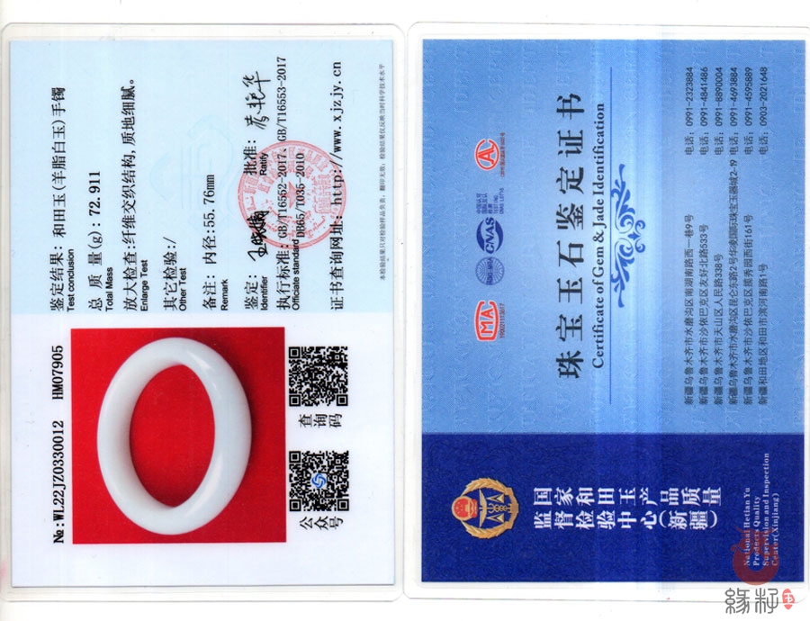 中国新疆和田玉网出售的商品均出具以下资质的国家权威质检部门质检证书: