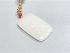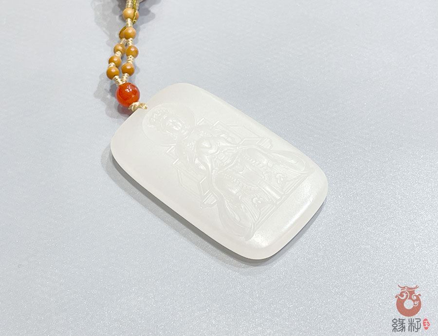 作品简述:和田玉挂件羊脂白玉泰山奶奶吊坠护佑平安