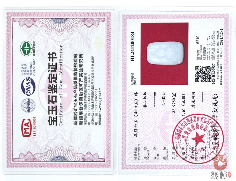 鉴定:国家和田玉(新疆)检测中心