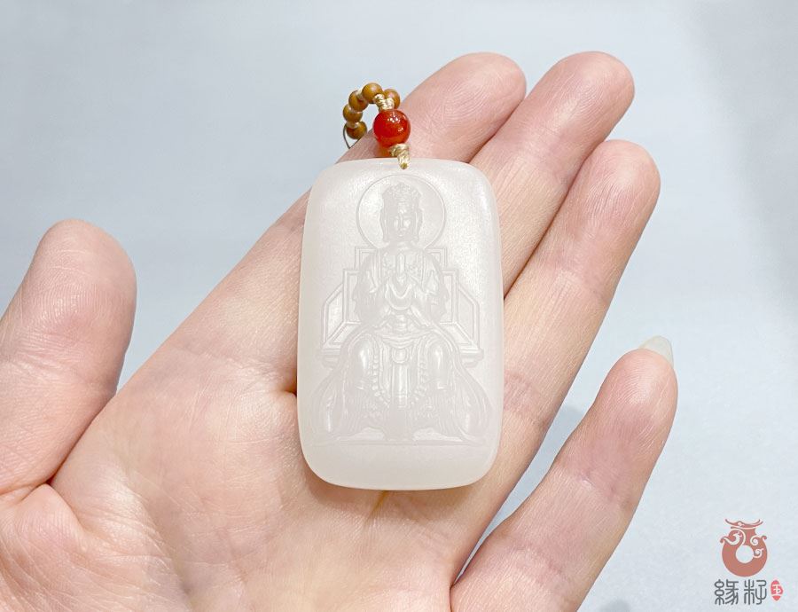 作品简述:和田玉挂件羊脂白玉泰山奶奶吊坠护佑平安