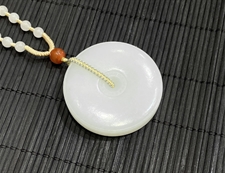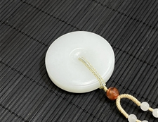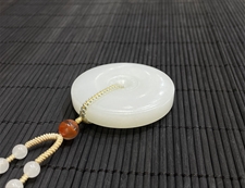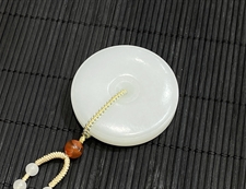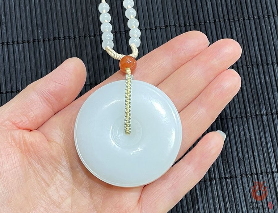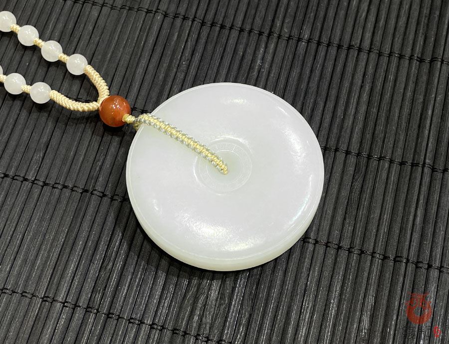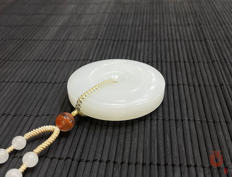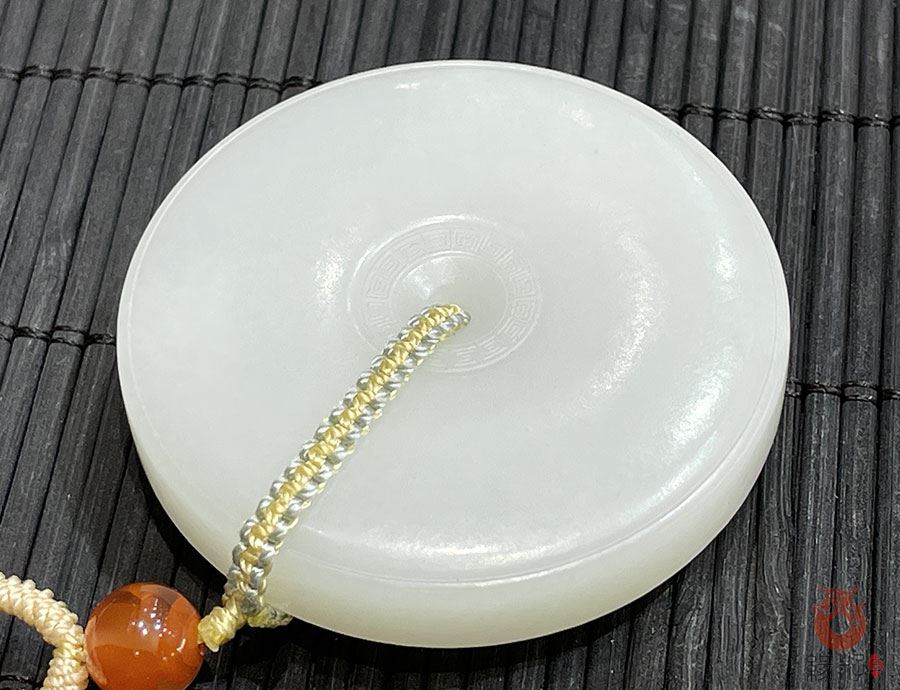作品简述:缘籽和田玉平安扣挂件吊坠,天然优质和田玉羊脂玉,苏工大师设计雕刻,质地油润,光泽细腻,雕工精细,寓意平平无事,平平安安,国检证书,七天无理由退货。