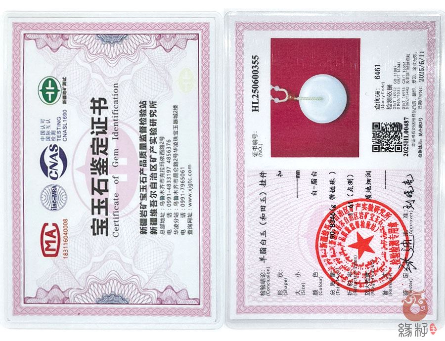 (附:新疆岩矿宝玉石产品质量监督检验站国家和田玉产品质量监督检验中心样例)