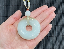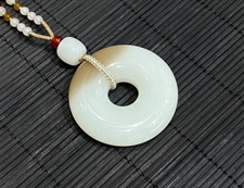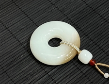作品简述:缘籽和田玉平安扣挂件吊坠,天然优质和田玉羊脂玉,苏工大师设计雕刻,质地油润,光泽细腻,雕工精细,寓意平平无事,平平安安,国检证书,七天无理由退货。