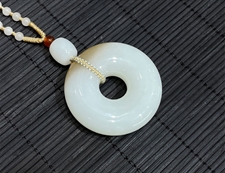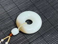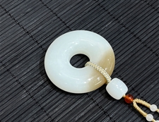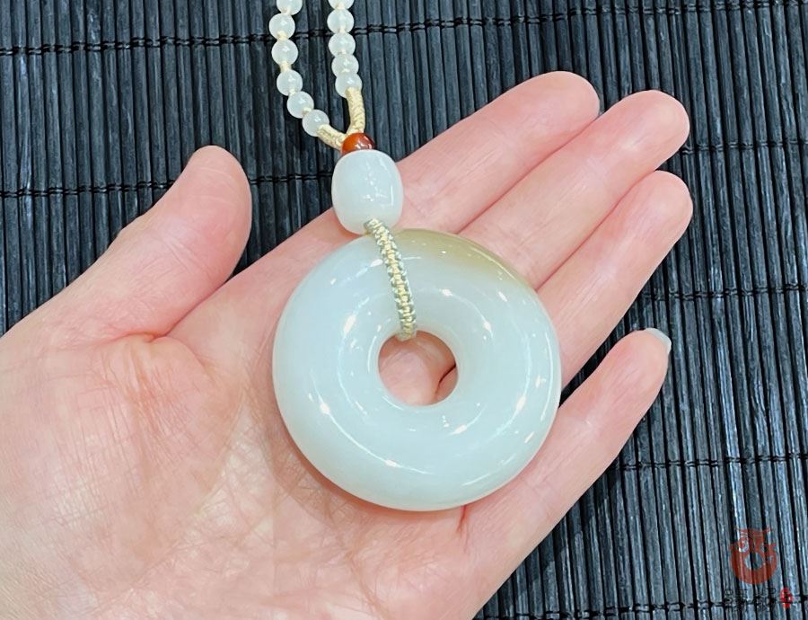 作品简述:缘籽和田玉平安扣挂件吊坠,天然优质和田玉羊脂玉,苏工大师设计雕刻,质地油润,光泽细腻,雕工精细,寓意平平无事,平平安安,国检证书,七天无理由退货。