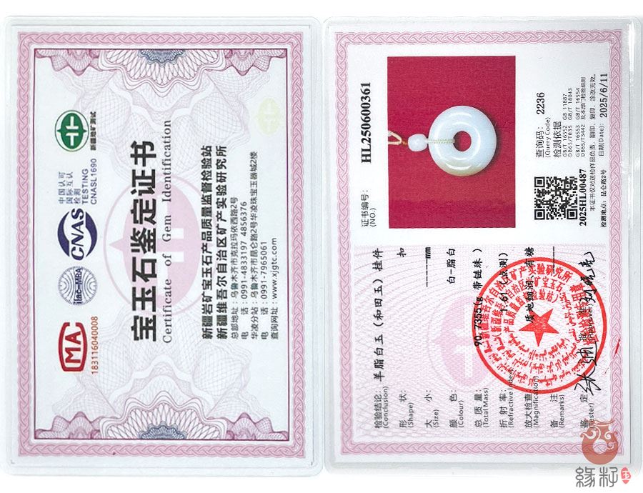 (附:新疆岩矿宝玉石产品质量监督检验站国家和田玉产品质量监督检验中心样例)