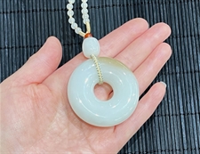 平安扣外圈是圆的,象征着辽阔天地混沌;内圈也是圆的,象征我们内心的平宁安远。平安扣佩戴简洁大方,贴身润肤,护身辟邪平安符,出入吉祥保平安;