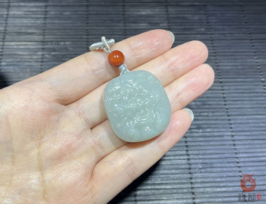 作品简述:缘籽和田玉瑞兽挂件,天然优质和田玉青白玉籽料,苏工大师设计雕刻,质地油润,光泽细腻,雕工精细,寓意吉祥如意,国检证书,七天无理由退货。