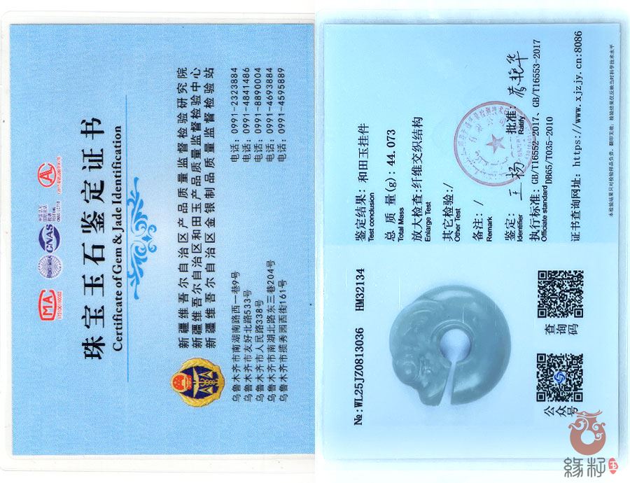 (附:新疆岩矿宝玉石产品质量监督检验站国家和田玉产品质量监督检验中心样例)
