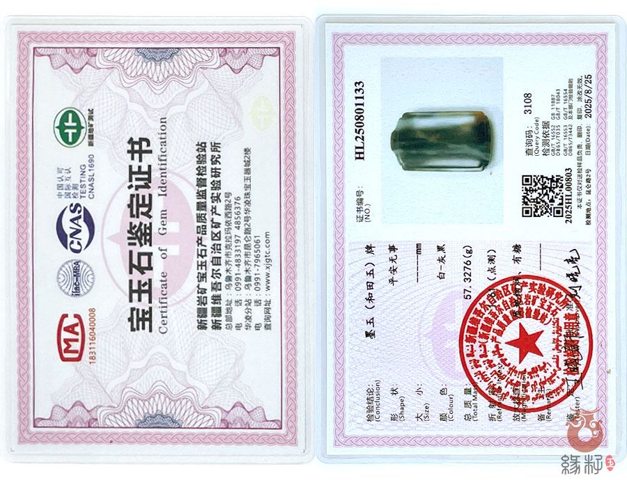 (附:新疆岩矿宝玉石产品质量监督检验站国家和田玉产品质量监督检验中心样例)