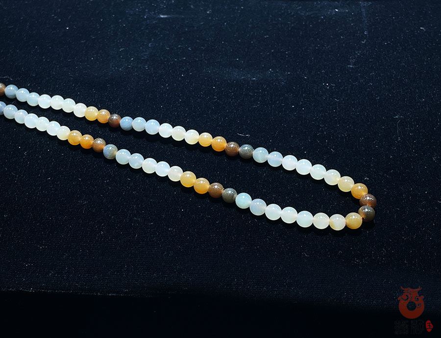 作品简述:和田玉手串选用纯天然上等和田玉多宝原料,颗颗精选,晶莹圆润饱满,和田玉多宝5mm圆珠手串质地纯净,油润光泽细腻