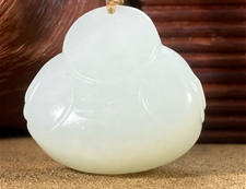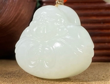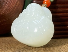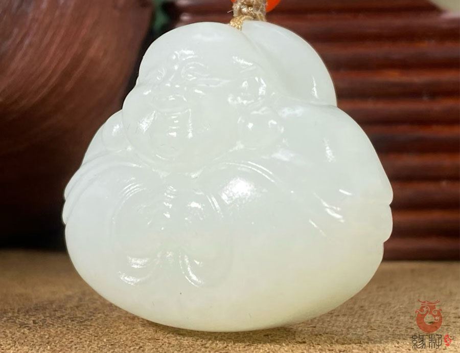 作品简述:缘籽和田玉弥勒佛挂件吊坠,天然优质和田玉羊脂白玉,苏工大师设计雕刻,质地油润,光泽细腻,雕工精细,寓意笑口常开,国检证书,七天无理由退货。