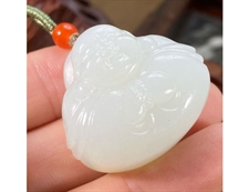 作品特色: 玉质温润细腻,油润白糯老熟,结构均匀致密无杂质,天然高端羊脂玉精品;传统经典设计,神态亲善祥和,动静神似,圆满,端庄喜庆/专业柔光技工精心细致多遍打磨,柔光层次分明,油糯,高贵典雅,意,形,材,工集作品于一体;其它饰材/配珠/手编挂链/精美包装礼盒及手提袋。