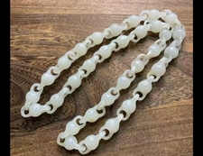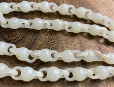 作品简述:和田玉工艺项链选用纯天然上等和田玉白玉原料,颗颗精选,晶莹圆润饱满,和田玉白玉活环一体工艺项链质地纯净,油润光泽细腻,国检证书