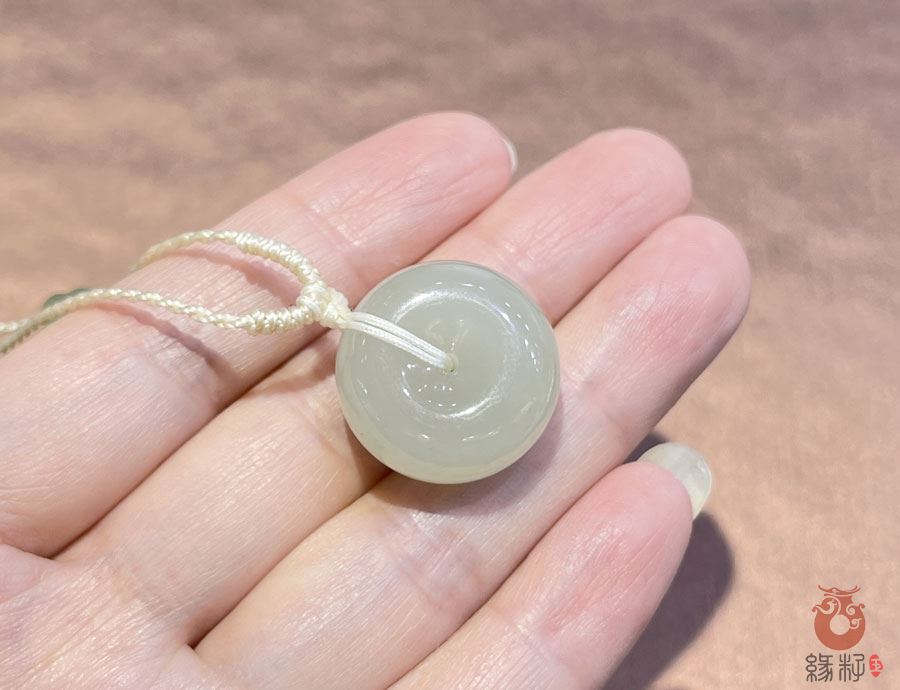 作品简述:缘籽和田玉平安扣挂件吊坠,天然优质和田玉青白玉,苏工大师设计雕刻,质地油润,光泽细腻,雕工精细,寓意平安无事,平平安安,国检证书,七天无理由退货。