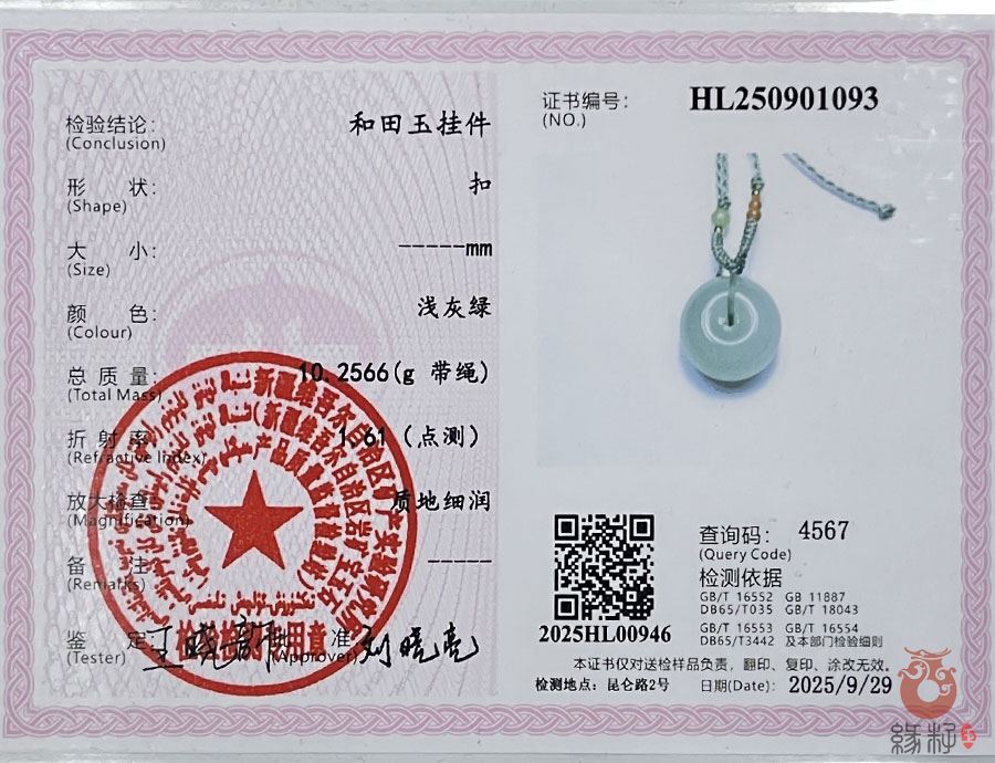 (附:新疆岩矿宝玉石产品质量监督检验站国家和田玉产品质量监督检验中心样例)
