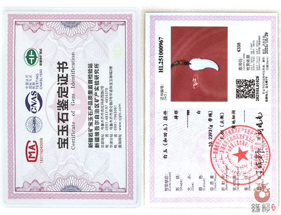 (附:新疆岩矿宝玉石产品质量监督检验站国家和田玉产品质量监督检验中心样例)