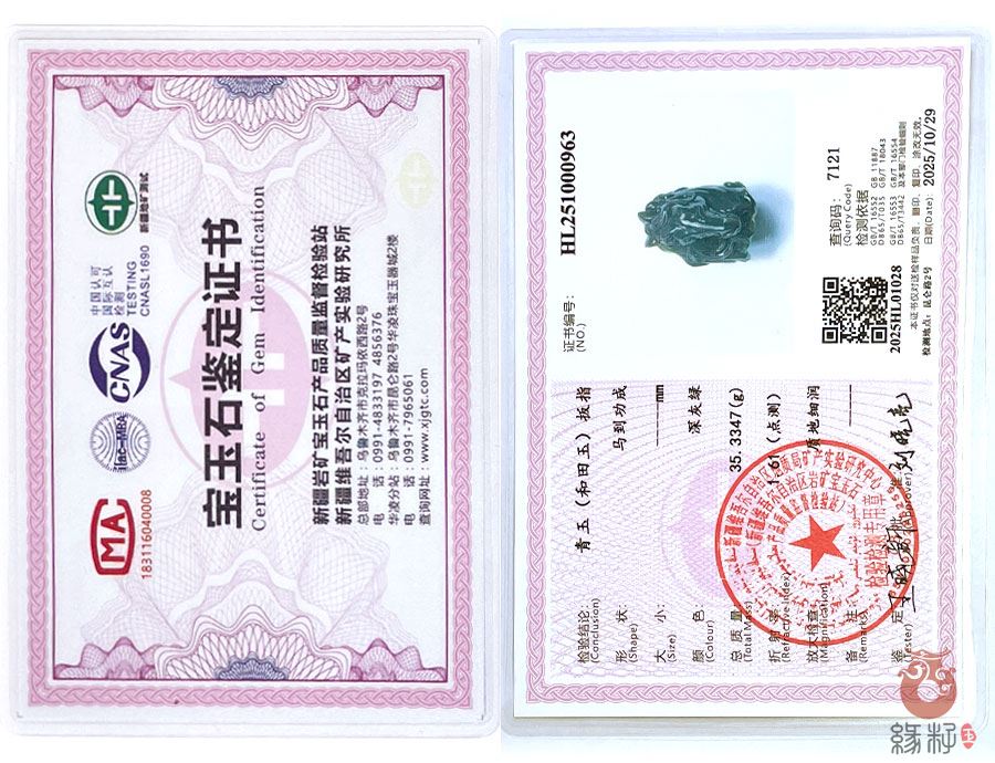中国新疆和田玉网出售的商品均出具以下资质的国家权威质检部门质检证书: