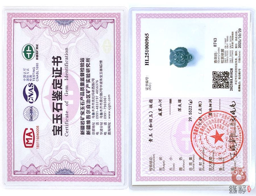 中国新疆和田玉网出售的商品均出具以下资质的国家权威质检部门质检证书: