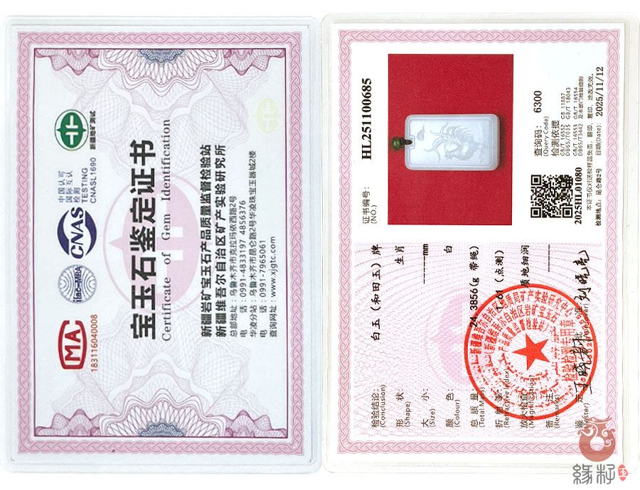 (附:新疆岩矿宝玉石产品质量监督检验站国家和田玉产品质量监督检验中心样例)