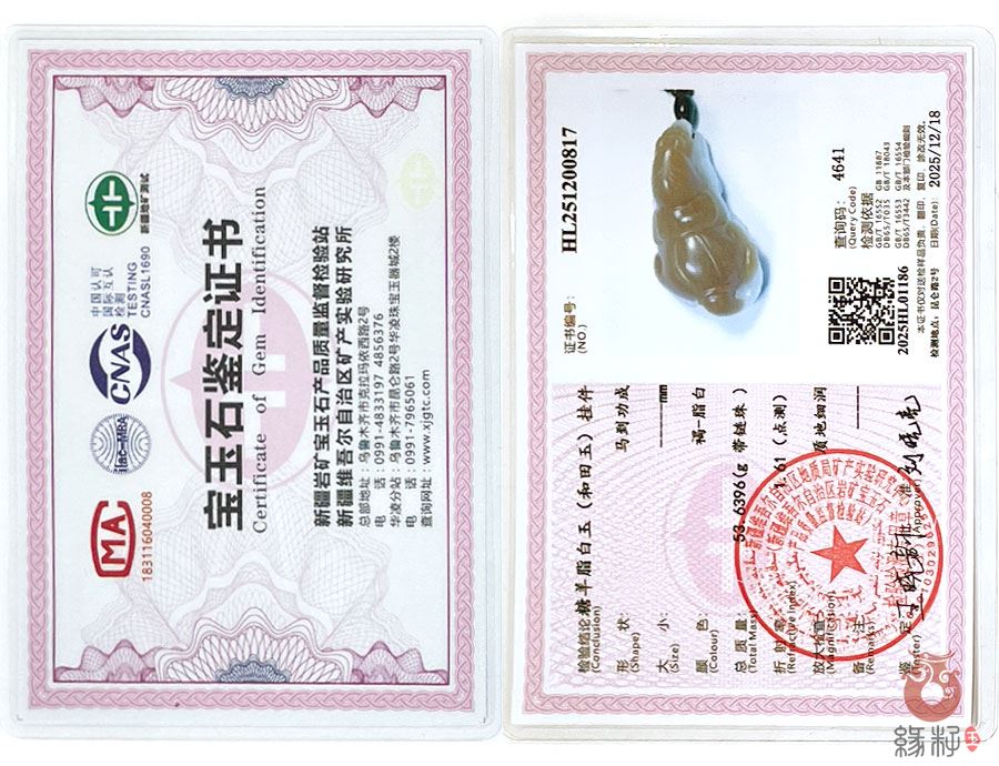 (附:新疆岩矿宝玉石产品质量监督检验站;国家和田玉产品质量监督检验中心样例)