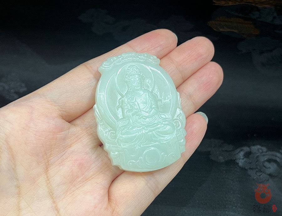 和田玉温润养人,观音本身具消病除障法力,共同强化祛病延寿的象征意义。
