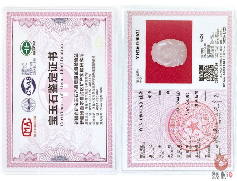 (附:新疆岩矿宝玉石产品质量监督检验站国家和田玉产品质量监督检验中心样例)