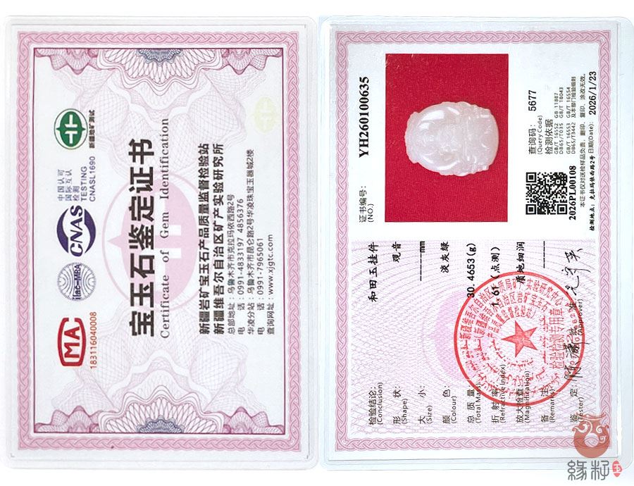 (附:新疆岩矿宝玉石产品质量监督检验站国家和田玉产品质量监督检验中心样例)