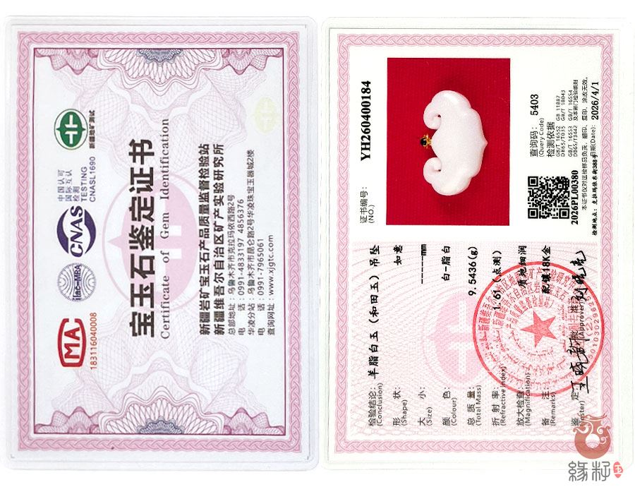 (附:新疆岩矿宝玉石产品质量监督检验站国家和田玉产品质量监督检验中心样例)