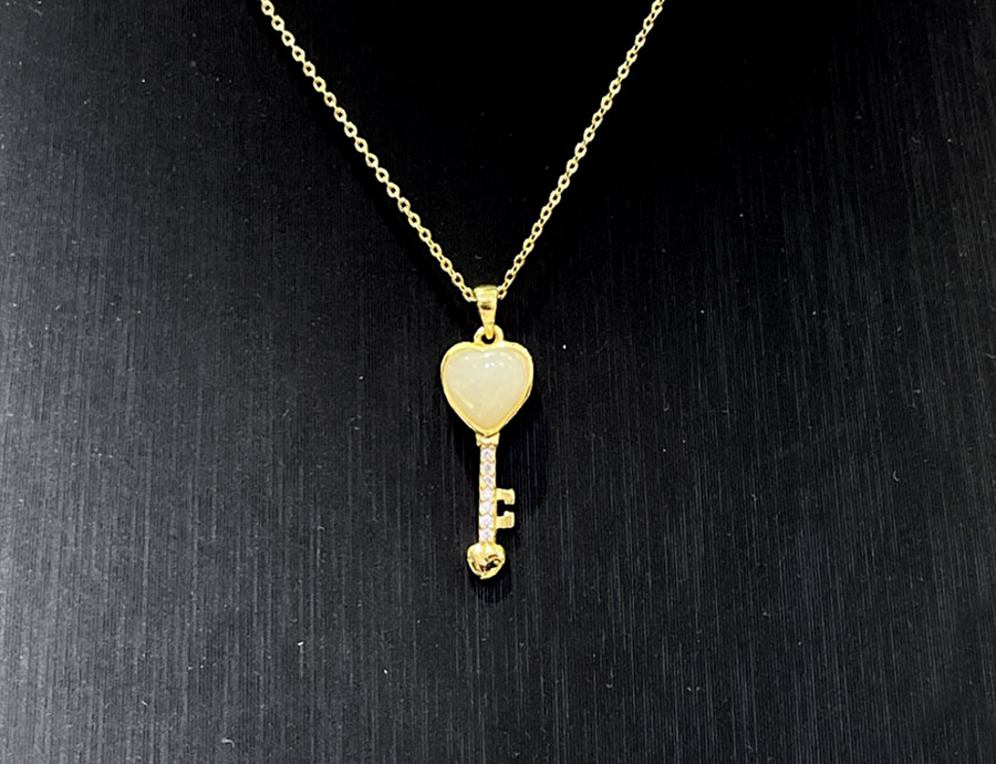 和田玉925银镶吊坠白玉钥匙925银镶吊坠