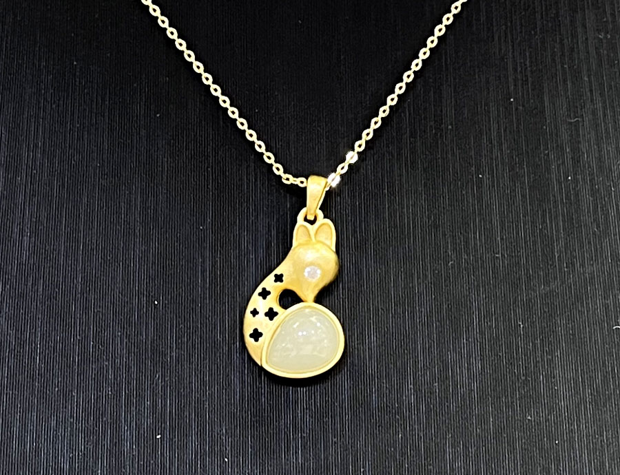 和田玉925银镶吊坠白玉小鹿925银镶吊坠